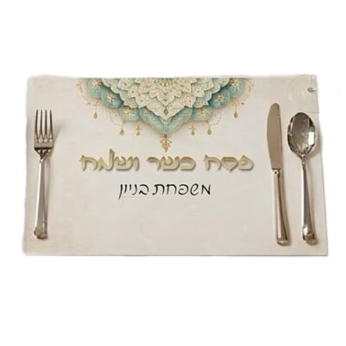 פלייסמנט נייר איכותי לשולחן חג הפסח בעיצוב כרום יוקרתי המעניק לשולחן הסדר מראה חגיגי ומרשים. מתאים לשימוש בשולחן החג, לאירוח משפחתי או לאירועים סביב חג הפסח.