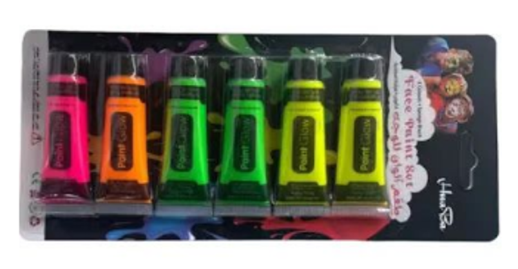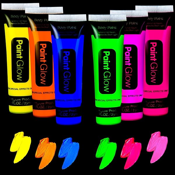 צבעי גוף מקצועיים בגוונים עזים במיוחד, המוארים באור שחור ויוצרים אפקט זוהר מרהיב למסיבות, הופעות ופסטיבלים.