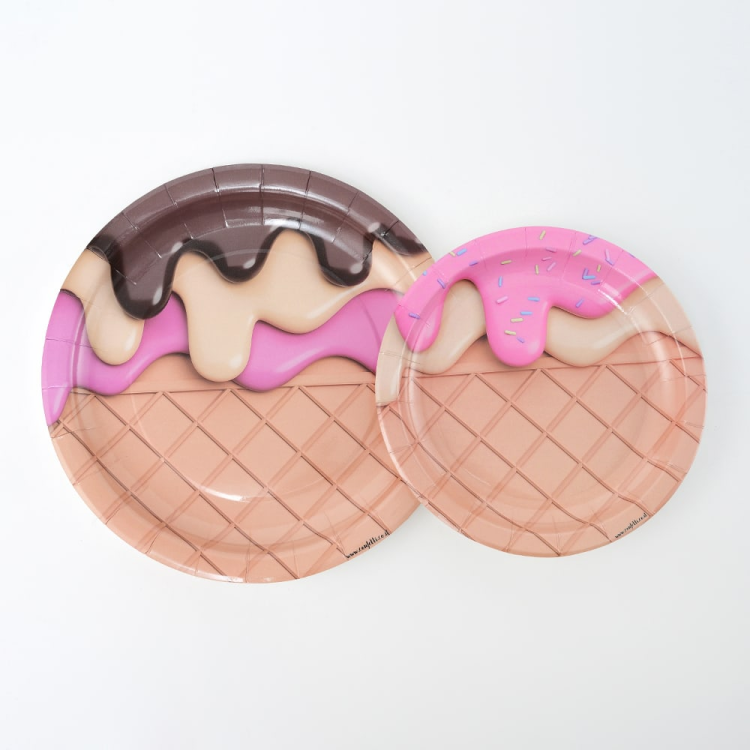 צלחות גדולות בעיצוב גלידה למסיבה קייצית