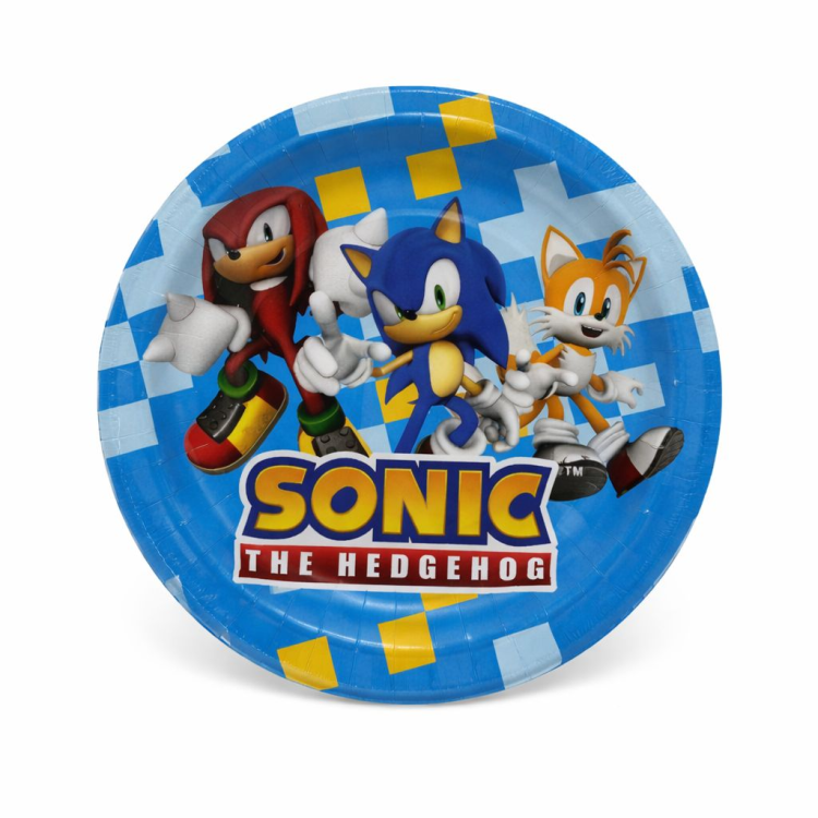 צלחות עגולות בעיצוב מלא אקשן עם סוניק הקיפוד