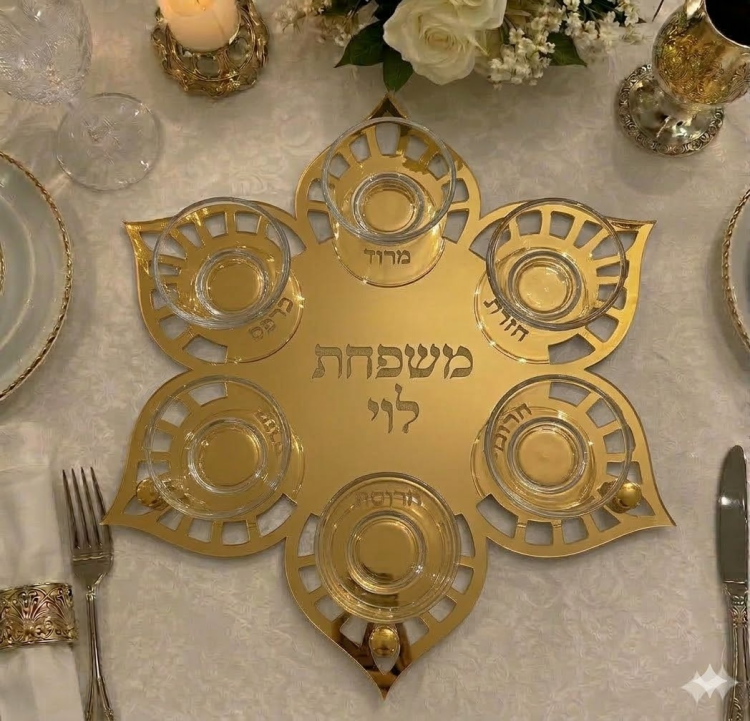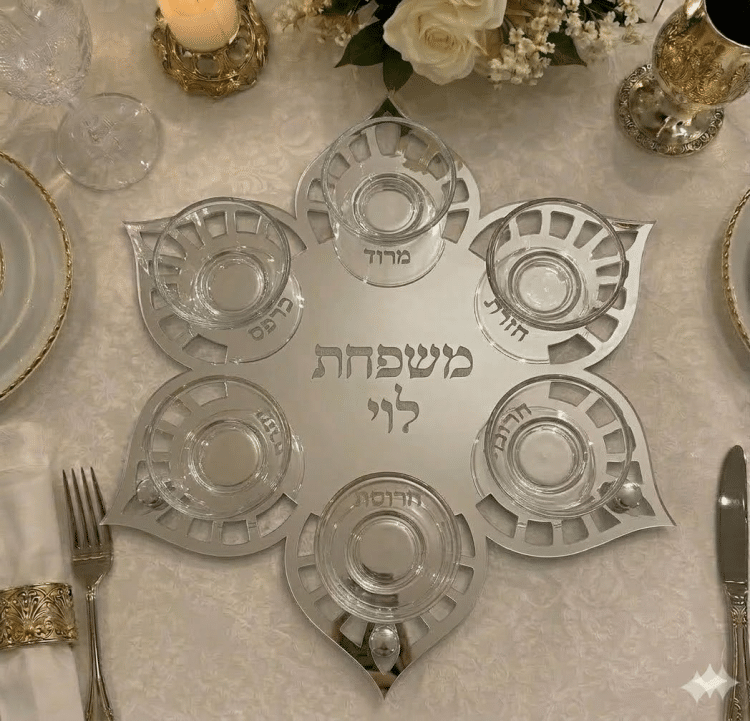 צלחת סדר לפסח בעיצוב ייחודי בצורת פרח, המעניקה לשולחן החג מראה אלגנטי, חגיגי ומרשים. העיצוב המיוחד יוצר נוכחות יוקרתית במרכז שולחן ליל הסדר ומשתלב בצורה מושלמת עם עיצוב שולחן חגיגי.