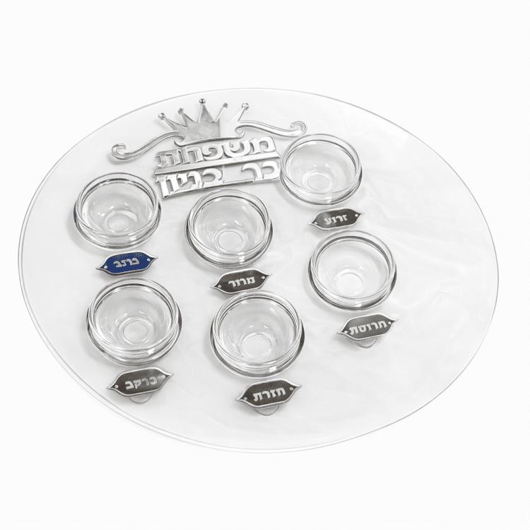 צלחת סדר במראה יוקרתי, עם מיתוג שם המשפחה.