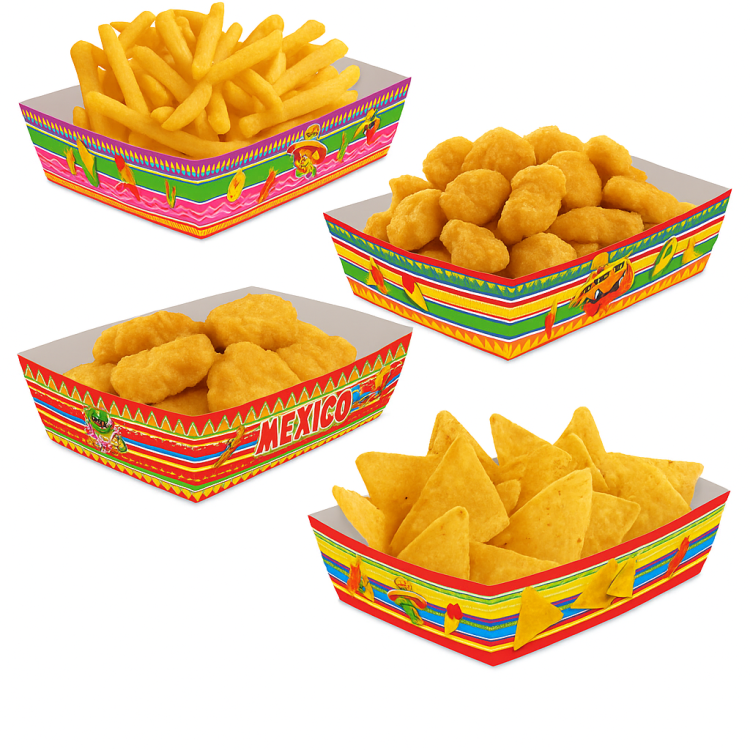 ל קופסה מודפסת בצבעים חיים ודוגמאות חגיגיות המוסיפות לאווירה. פתרון נוח, חד־פעמי ושימושי לאירוח מהנה ומסודר.