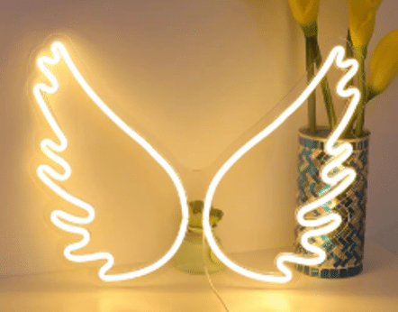 שלט לד כנפי מלאך ניתן לחבר באמצעות חשמל או בטריות.