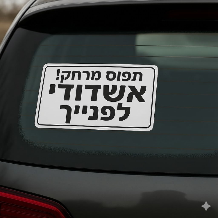 בין אם זה “ילדים באוטו”, “זהירות כלב ברכב”, “משפחת כהן בדרכים” או כל טקסט אחר – אנחנו נדפיס במיוחד בשבילכם.