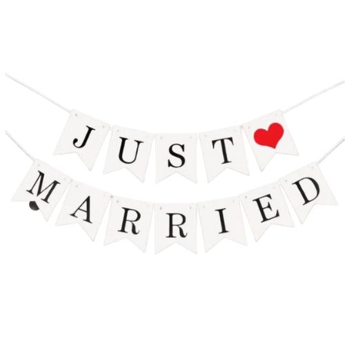 שלט just married לצילומי החתונה בצבע רוז גולד.