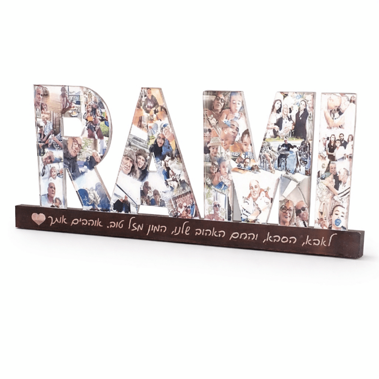 אותיות דקורטיביות בעיצוב אישי, המשלבות קולאז’ מרהיב של עד 20 תמונות סה״כ – התמונות האהובות שלכם הופכות ליצירה אחת מיוחדת, מושלמת כמתנה או כפריט עיצוב מרשים לבית.