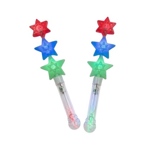 שרביט כוכבים צבעוני עם 3 אורות ומגן דוד במרכז כל כוכב,
