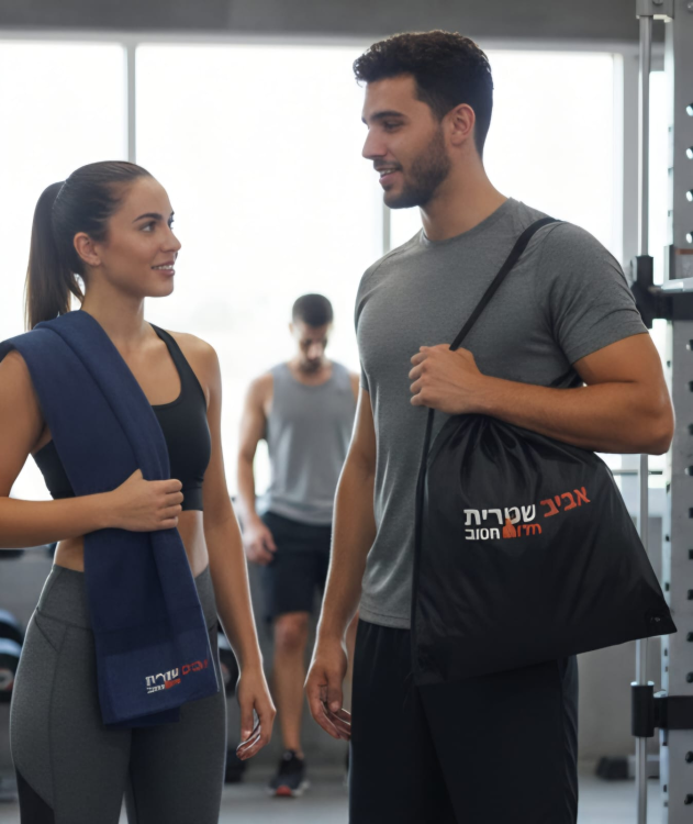 הסט כולל תיק שרוך קל ונוח לנשיאה ו־מגבת אימון רכה וממותגת, אידיאליים לחדר כושר, ריצה, חוגים ואירועי ספורט.