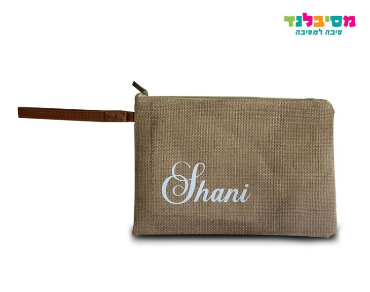 תיק איפור אלגנטי ומעוצב עשוי יוטה איכותית, עם ידית נוחה ורוכסן לסגירה מושלמת.