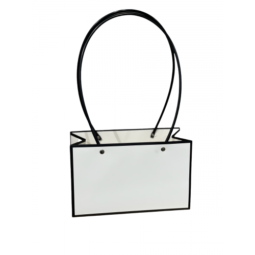 תיק פרחים מלבן לבן פס שחור עם ידיות-10 יחידות