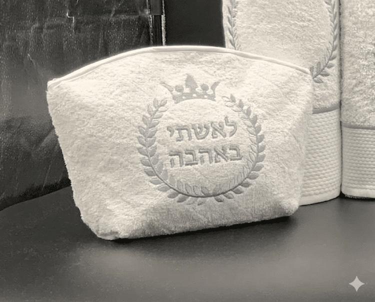 תיק רחצה יוקרתי מבד מגבת – עם אופציה להוספת שם!