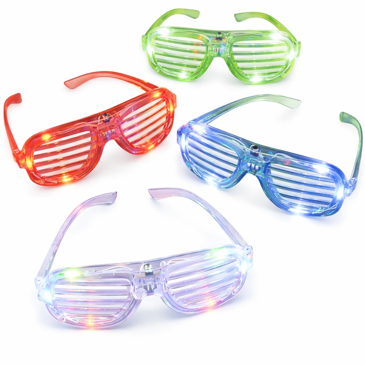 משקפי LED צבעוניים – מארז 12 יחידות, בעיצוב תריס אופנתי עם תאורת לד מובנית. המשקפיים מאירים באורות צבעוניים ויוצרים אפקט זוהר ובולט בחושך, מושלם למסיבות, ימי הולדת, מסיבות ריקודים, פסטיבלים ואירועי לילה. קלים ונוחים להרכבה, מתאימים לילדים ולמבוגרים. פתרון מושלם לאווירת מסיבה שמחה וצבעונית ולהפעלה קבוצתית.