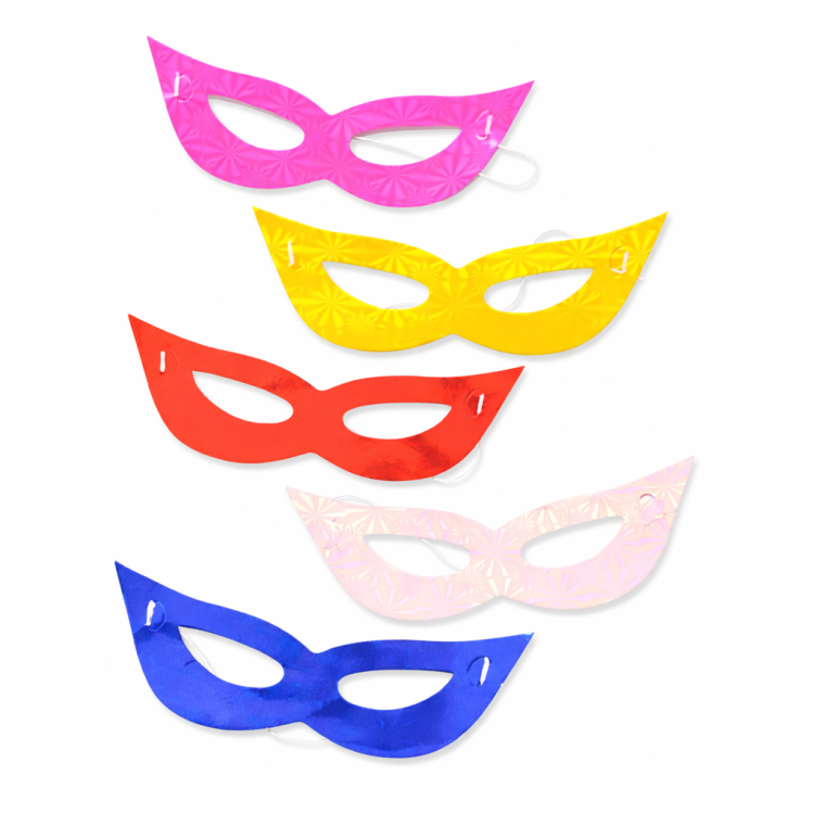6 מסכות מטאליות צבעוניות, לקישוט השולחן, להכניס במארזים ועוד.