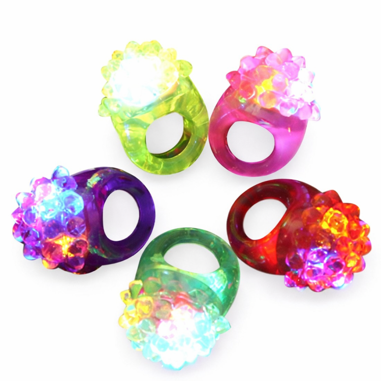 טבעת LED צבעוניות וזוהרות בעיצוב פרח, מושלמות למסיבות, ימי הולדת, אירועי ערב ופסטיבלים. כל טבעת כוללת תאורת LED חזקה עם צבעים מתחלפים, שמוסיפה אפקט מרשים וכיפי לכל חגיגה.